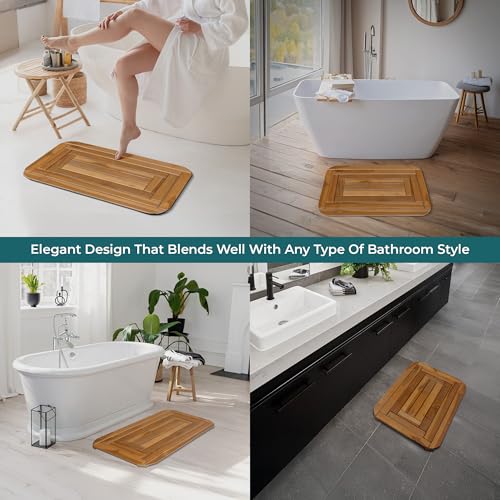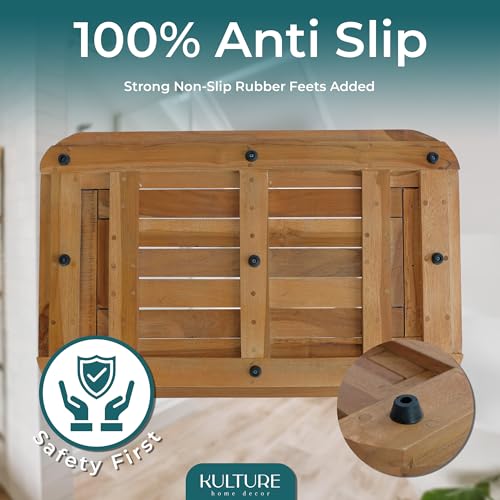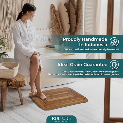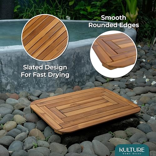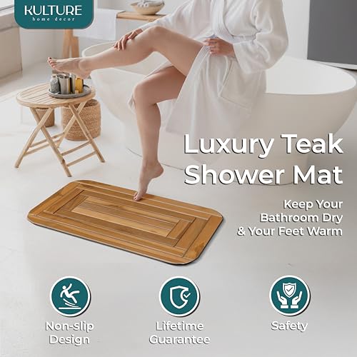 KultureDeco - سجادة دش من خشب الساج مقاس 7.62×50.8 سم، سجادة حمام خشبية كبيرة مقاومة للماء وغير قابلة للانزلاق، مخصصة لحوض الاستحمام والجاكوزي والسبا والساونا