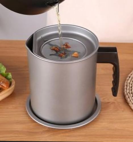 Generic - Premium Kitchen Oil Storage Container with Strainer, 1.4L Stainless Steel Grease Pot, Fine Mesh Filter, Anti-Scalding Handle, Oil and Fat Separator for Cooking and Frying