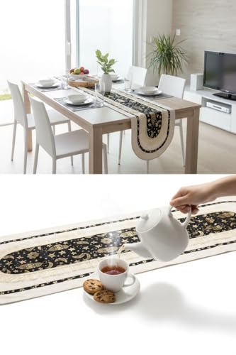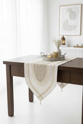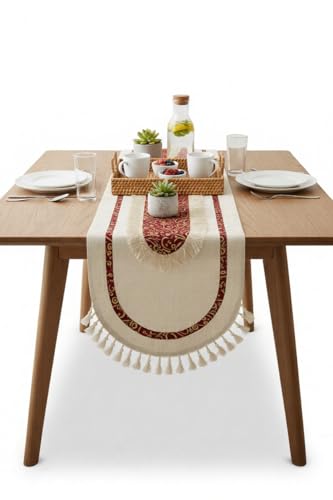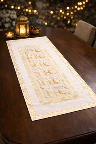 AREXOL - مفرش طاولة من الكتان الفاخر مقاس 150 × 50 سم بنمط عربي مزخرف لطاولة الطعام والمجلس والبوفيه يعزز الديكور الشرقي سهل التصميم وقابل للطي والتخزين والاستخدام المنزلي