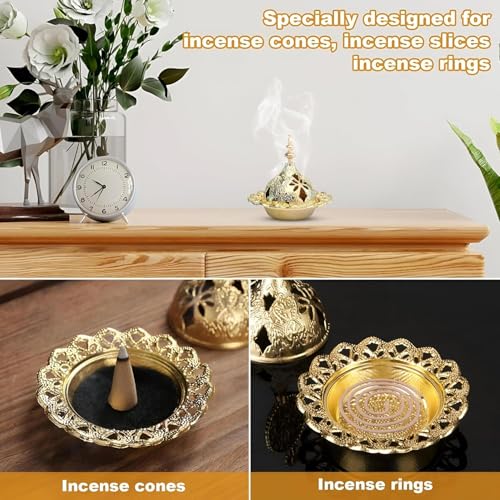 Generic - Premium Metal Incense Burner in Multiple Shapes and Colors | Perfect for Holidays and Celebrations | (Gold 3)