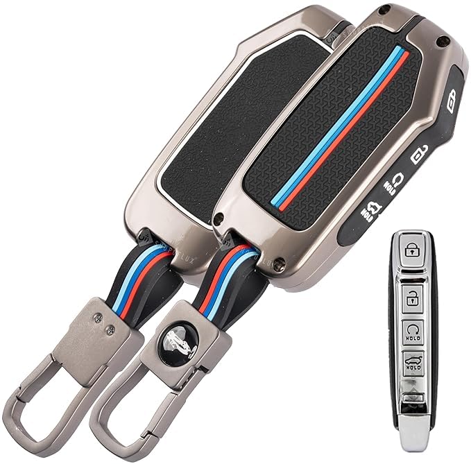 Generic - Premium Metal Key Fob Cover - Compatible with Kia Seltos 2023/2024 Facelift HTX, Carens X Line, Sonet Facelift – 4 Buttons Smart Key – Black – Full Protection & Stylish Design
