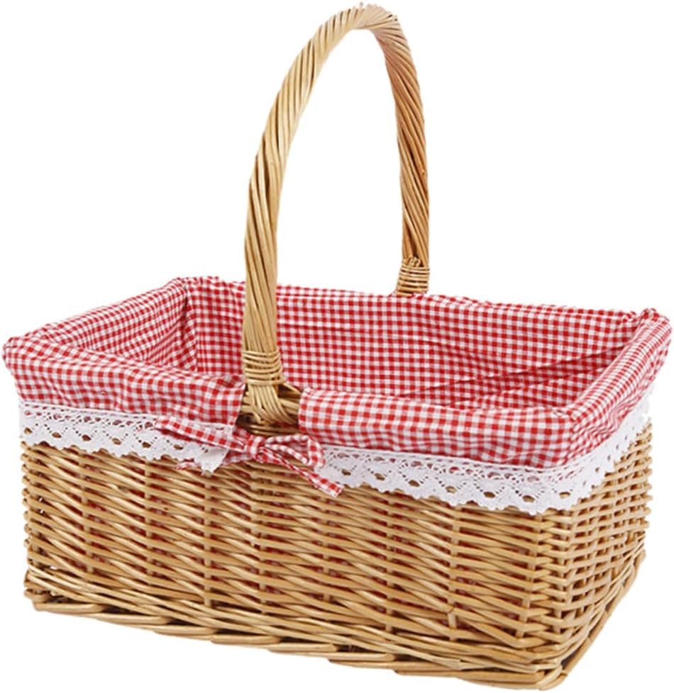 Generic - Premium Picnic Basket with Vintage Plaid Design and Durable Handle | Premium Quality Rattan Material Handmade Lunch Box | Ideal for Trips, Storage, Home Decor l