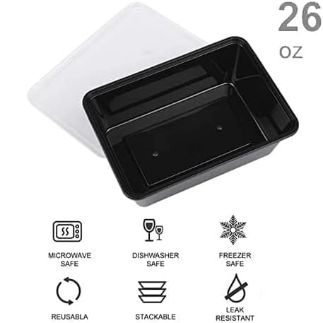 Generic - علب بلاستيكية فاخره تحضير الوجبات في الميكرويف وحفظ الطعام مرنة حاويات تخزين طعام بلاستيك خالية من البيسفينولA اغطية آمنة للاستخدام في الثلاجة والميكروويف وغسالة الأطباق والصحون (20, اسود, 1000 مل)