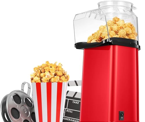 Generic - ماكينة فشار فاخرة تعمل بالهواء الساخن بقدرة 1200 وات، تحضر الفشار خلال دقيقتين فقط، سهلة الاستخدام بزر واحد، لون أحمر