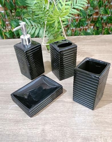 Generic - "Premium Porcelain Bathroom Set: Imported & High Quality - Black and White Design Includes 4 Pieces to Beautify Your Bathroom! " - Generic