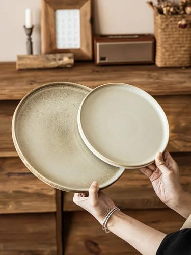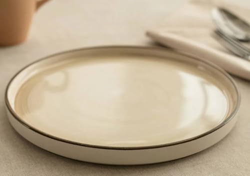 Generic - طبق كيك بورسلين دائري بلون أبيض كريمي مع حافة فضية بتصميم بسيط عصر، للحلويات والتقديم، قطر 20 سم
