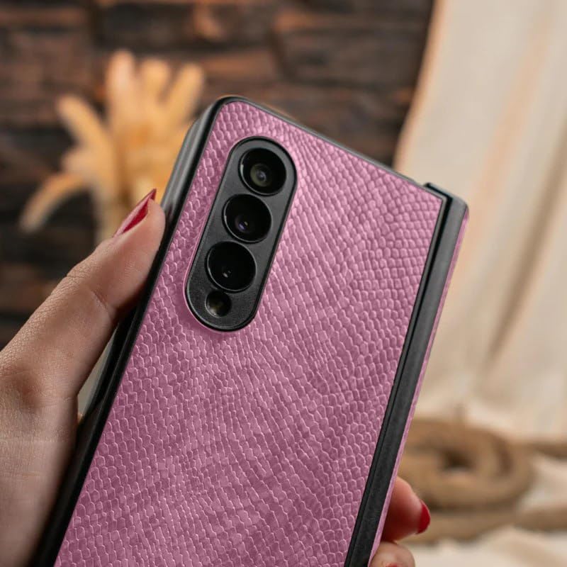 Next store - Premium PU Leather Case Compatible with Galaxy Z Fold 3 [Crocodile Shape] Wireless Charging Case for Samsung Galaxy Z Fold 3 - by Next store (Pink)