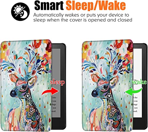 Generic - Premium PU Leather Smart Cover with Auto Wake/Sleep for 6" Kindle 2024 and 2022 (11 Generation), Deer