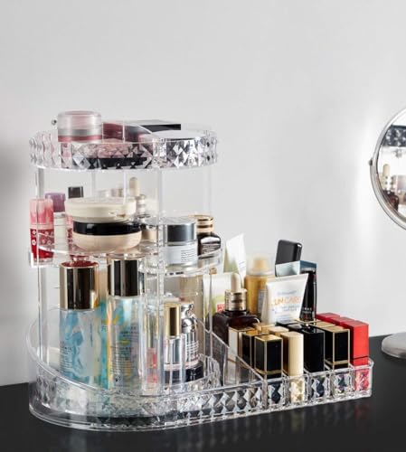 Generic - طقم منظم مكياج دوار فاخر مكون من قطعتين – دوران 360 درجة – تصميم أنيق وواسع لتخزين أدوات التجميل والعناية بالبشرة – منظم ميكب دوار بقاعدة مستقرة وسهلة الاستخدام GH