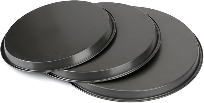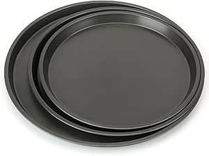 Generic - Premium Round Pizza Baking Pans - 3 Pieces - Non-Stick - Multi Use - Black