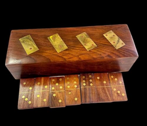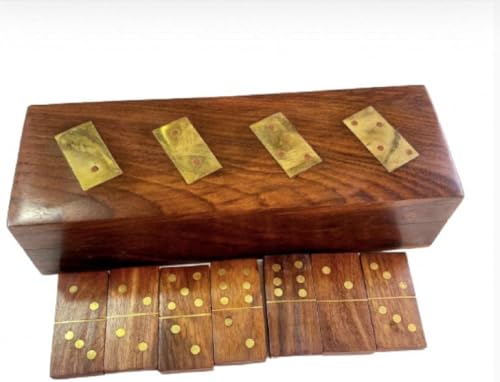 AREXOL - Premium Sheesham Wood Domino Set with Copper Inlay Handmade Luxury Game Box Elegant Classic Entertainment for Adults Home and Office Decor