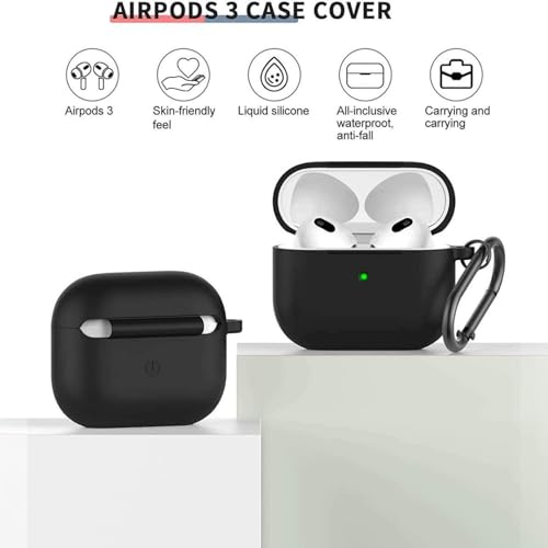 Generic - جراب سيليكون ممتاز متوافق مع سماعات ايربودز 3، غطاء واقي مع بطانة داخلية من الشمواه، مقاوم للصدمات والغبار (أسود)