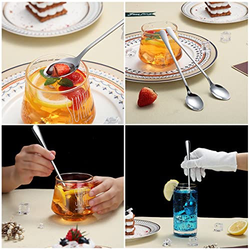 HOMQUEN - ملعقة بيد طويلة لتقليب القهوة، معالق آيس كريم من الفولاذ المقاوم للصدأ ولتقليب الكوكتيل، معالق شاي، طقم من 8 قطع (فضي)