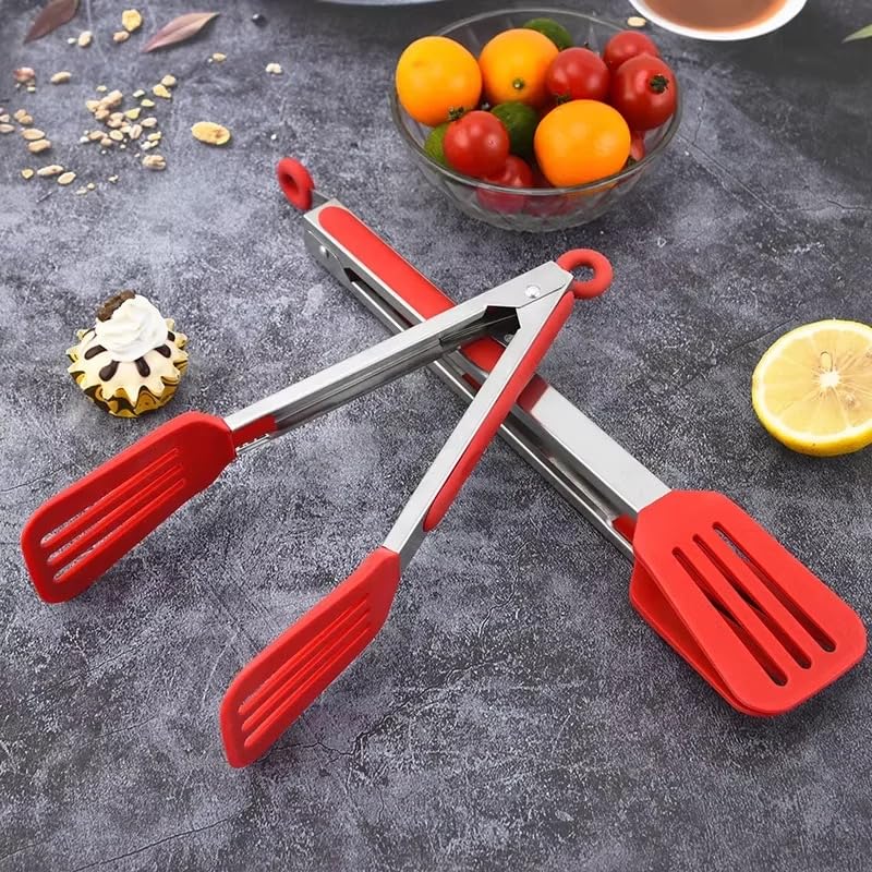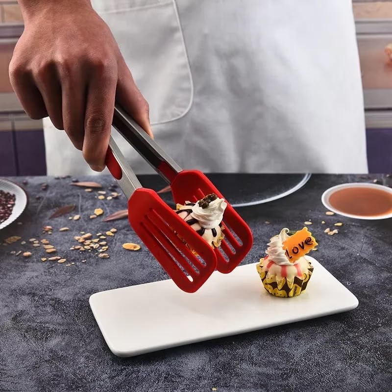 Generic - ملاقط شواء فاخرة من الفولاذ المقاوم للصدأ والسيليكون، مساكة طعام سيليكون بمقبض من الفولاذ المقاوم للصدأ للحلويات والتحميص والمزيد