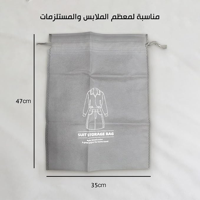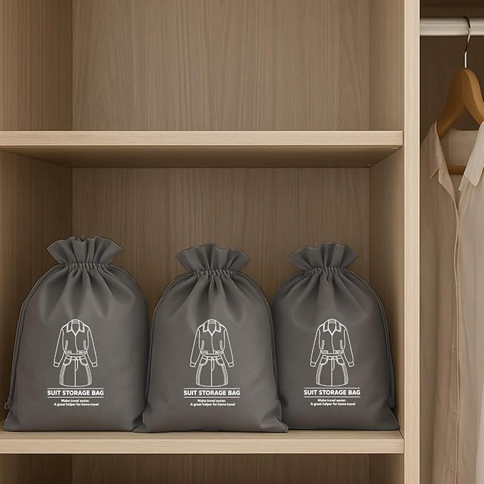Generic - Premium Suit Storage Bag, Non-Woven Fabric, Drawstring Closure, Breathable Garment Cover for Travel and Home, 1 Piece (Dark Grey)