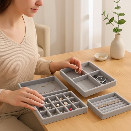 Generic - Premium Velvet Jewelry Organizer 4-in-1 – Drawer Divider Storage Trays for Necklaces, Rings, Earrings & Bracelets – Elegant Velvet Jewelry Box for Closet or Dressing Table