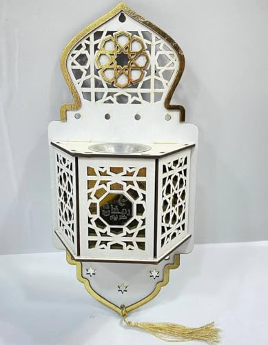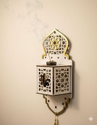 - Elegant Arabesque Islamic Design: Featuring intricate Arabic-inspired cutout patterns, this wall-mounted mabkhara adds a sophisticated decorative touch to any space. The timeless design blends traditional Islamic art with modern décor, making it ideal for Ramadan, Eid, and year-round home styling.