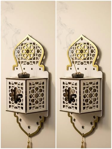 Generic - Premium Wooden Incense Burner Wall Decor, Arabesque Islamic Mabkhara for Bakhoor, Large Size Hanging Smoke Burner for Home and Prayer Area (Two packs)