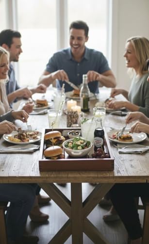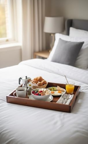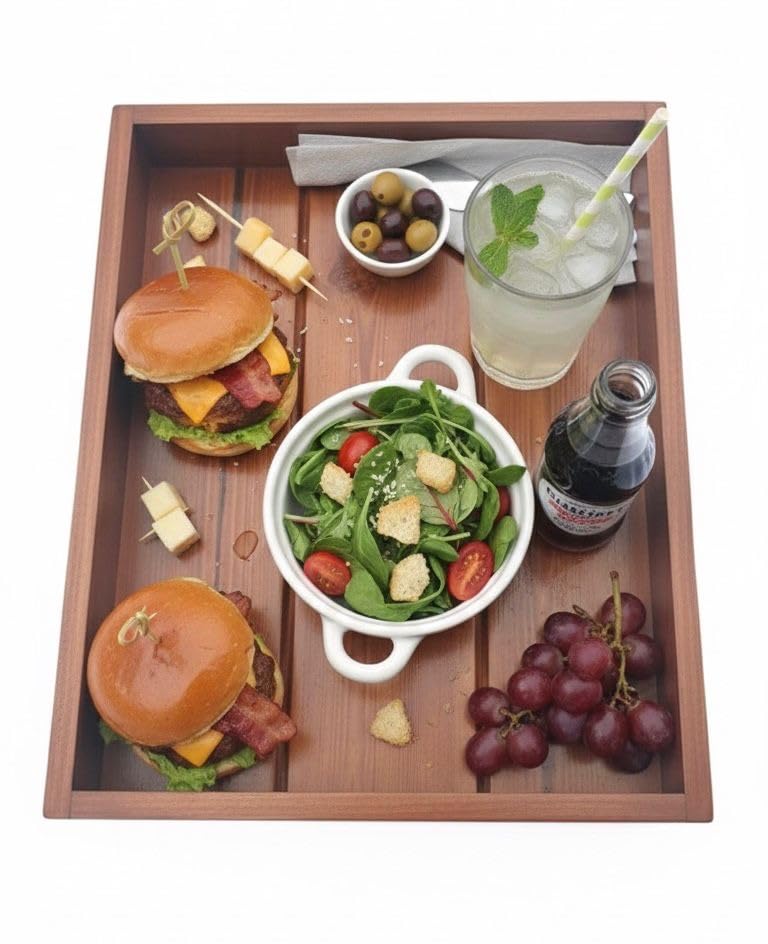 Woodyyhome - Premium Wooden Serving Tray Without Handles Natural Wood – Large Size 42x32cm – Ideal for Coffee, Desserts and Hospitality