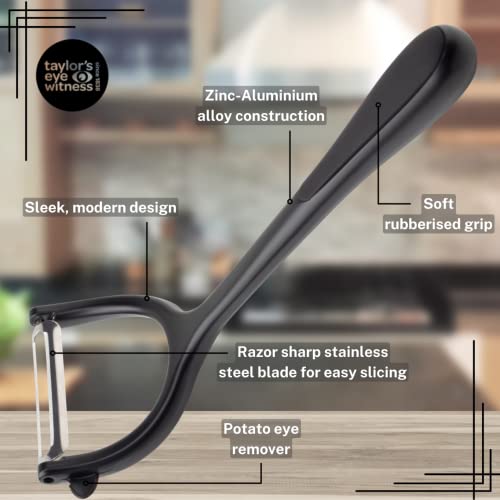Taylors Eye Witness - Premium Y Shaped Vegetable Peeler - Taylors Eye Witness, Great Go-to Kitchen Gadget, with Sturdy Zinc Aluminum Construction with Matt Black Colouring, Glides Easily Over Apple, Carrot Or Potato.