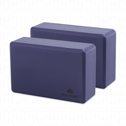 HOLY HEALTH - مجموعة مكعبات يوجا فاخرة مكونة من قطعتين - فوم ايفا عالي الكثافة - غير قابلة للانزلاق وخفيفة الوزن ومتينة - تتضمن شنطة حمل تحمل العلامة التجارية - الوان متعددة