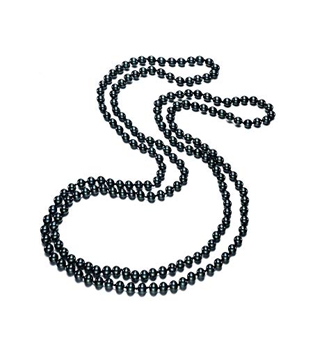 PremiumPearl - PremiumPearl 6-6.5mm Black Freshwater Cultured Pearl Necklace for Women AA Quality 49" -