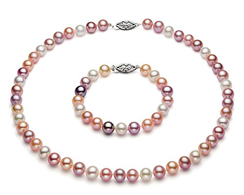 PremiumPearl - مشبك بلؤلؤ المياه العذبة الانيق مقاس 7.5-8.5 ملم من الفضة الاسترلينية متعددة الالوان عالية الجودة AAAA - بريميوم بيرو, لؤلؤ، للنساء