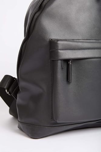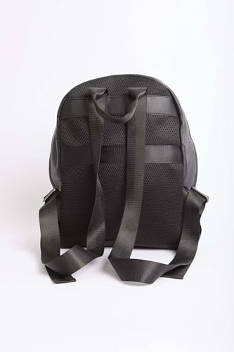 Premoda - Premoda Men's Fancy Logo Embellished Faux Leather Backpack Bag With Canvas Strap And Front Metal Zipper, Black, One Size