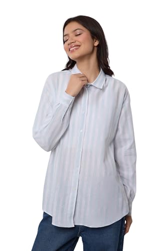 Premoda - قميص أنيق مخطط من الكتان بأكمام طويلة للنساء من بريمودا، PRWxx002874