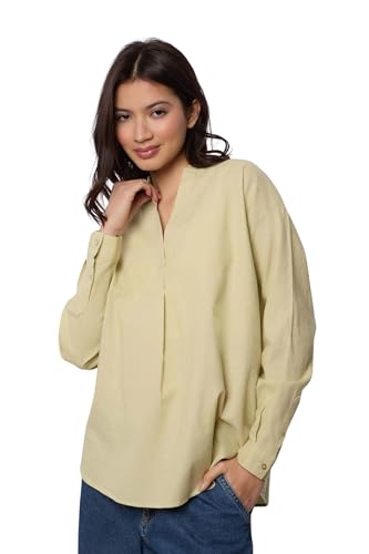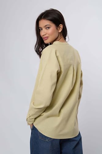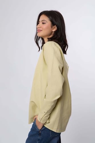 Premoda - Premoda Womens Fancy V-Neck Linen Blouse With Long Sleeves PRWxx003075 Modern