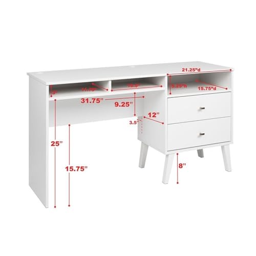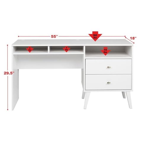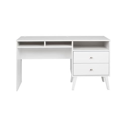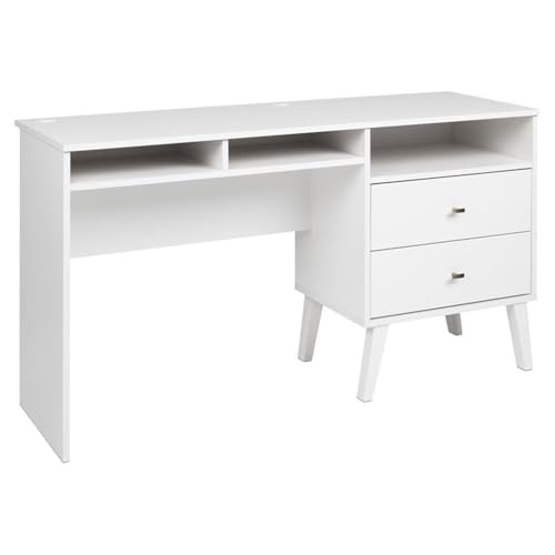 Prepac - Prepac WEHR-1413-1 Milo Mid-Century Modern Desk with 2 Drawers, 55 Inch Home Office Desk with Storage, White