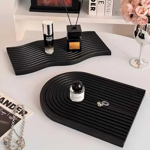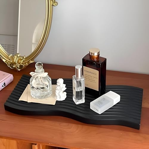 Generic - Presentation tray - Rural tray for home and kitchen use, ideal for coffee tables, living rooms and display of decorative elements such as crystals (Black Wavy)