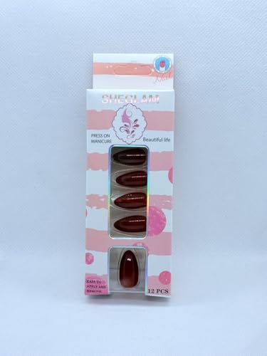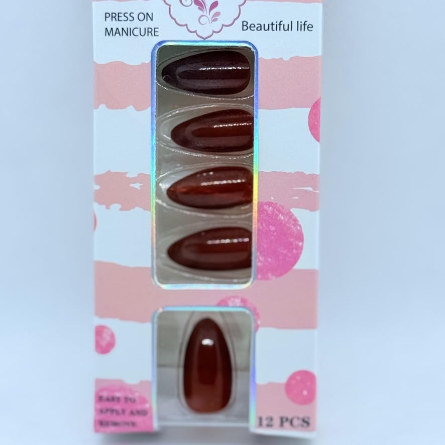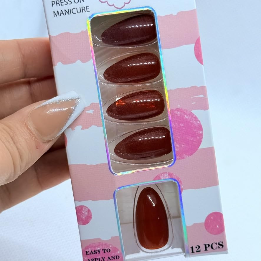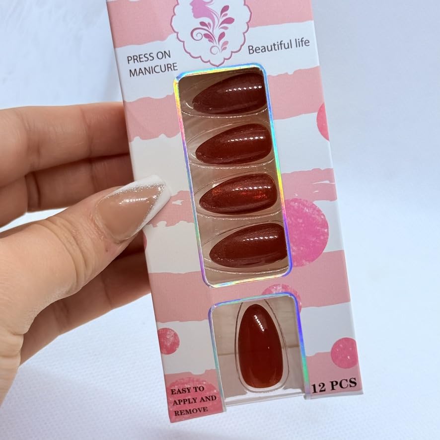 Generic - Press On Nails Almond Shape Cat Eye Effect – 12 Colors Professional Fake Nails, Salon Finish Luxury Look for Women (Red)