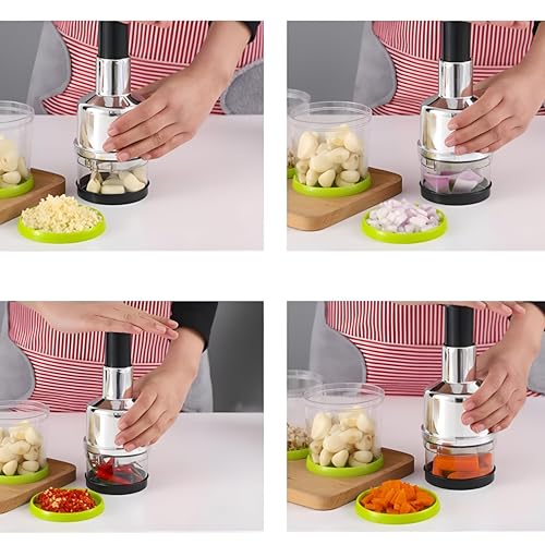 Generic - Pressed Garlic Chopper - Stainless Steel Manual Chopper for Garlic, Onion, Ginger & Vegetables, Ergonomic Hand Press Design for Quick, Mess-Free Kitchen Prep