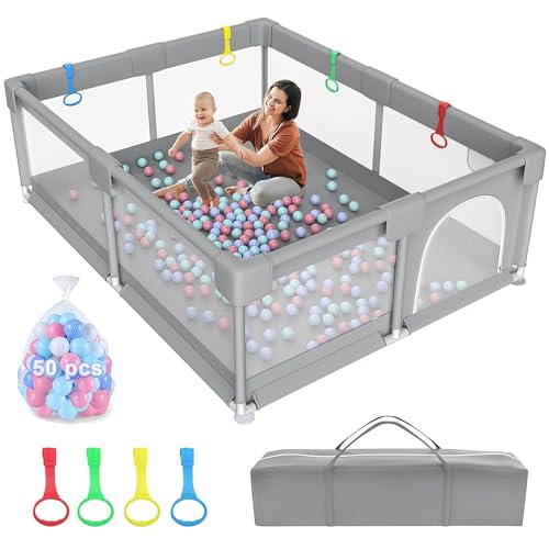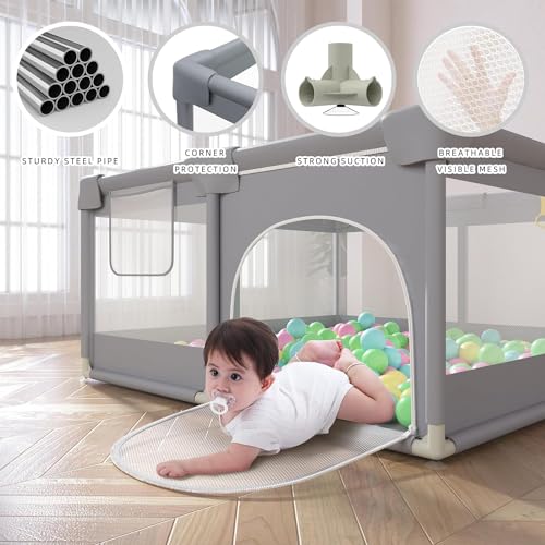 Pretocter - Baby Playpen Set for Toddler Infant Fence with Breathable Mesh Zipper Door Baby Playard Play Pens Large Kids Activity Center Playpen with Balls Sturdy Safety Play Yard for Indoor Outdoor