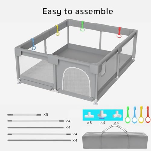 - 【Easy to Assemble】The baby playpen with ABS joints for easy assembly, disassembly, carrying bag is provided for easy storage transport.