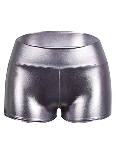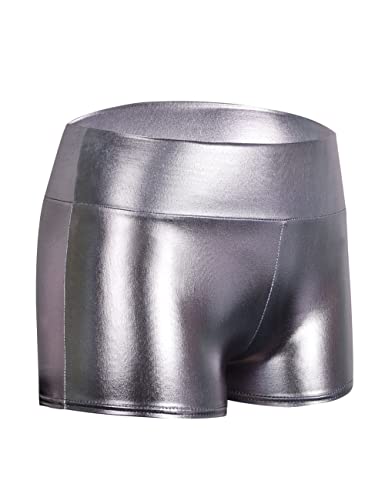 PrettyGuide - شورت قصير معدني لامع بخصر مرتفع للرقص في الديسكو للنساء من بريتي جايد، البوليستر