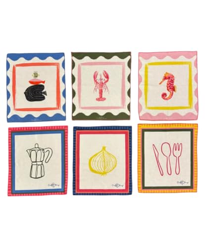Prettythings - فوط مطبخ مصنوعة من المايكروفايبر والقطن بتصميم أدوات المطبخ اليومية وبخات الماء، عالية الامتصاص وسريعة الجفاف مع شنطة تخزين من بريتي ثينجز، 35 × 30 سم، مجموعة من 3 قطع (عبوة من 6 فوط)