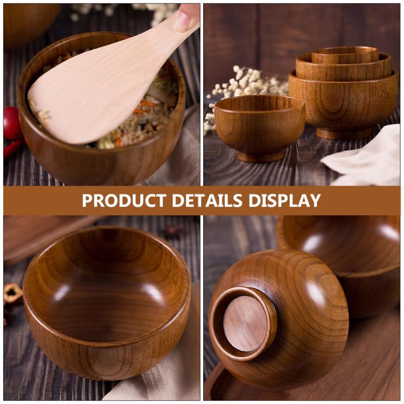 PRETYZOOM - PRETYZOOM Miso Soup Bowls 6pcs Wooden Rice Bowl Japanese Style Wooden Salad Bowl Mini Jujube Wood Bowl Hand- Carved for Rice Soup Condiments Small Wooden Bowls