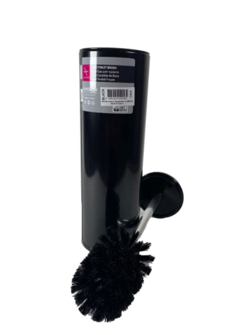 Primanova - Primanova Premium Acrylic Bathroom Toilet Brush and Holder, Toilet Brush with Stainless Steel Long Handle, Toilet Brush with Durable Scrubbing Brush and Inner Container for Easy Clean,BLACK