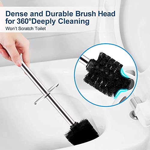 - ✅【FUNCTIONAL &ELEGANT 】 is also a compartment inside the toilet brush base to ensure that water droplets drip from the brush head quickly and keep the toilet brushes head dry and hygienic.