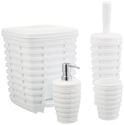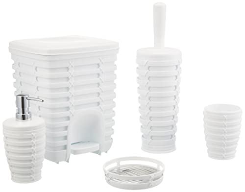 - 【DURABLE & AMAZING QUALITY】:This 5 piece bath accessories set is made of plastic that can last as long as possible. High quality bathroom accessories will resist constant use, keeping their stylish and new look over time