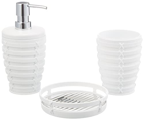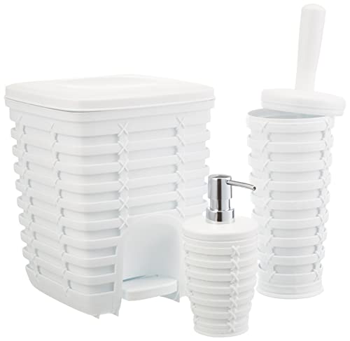Primanova - Primanova Prima Nova Plastic Bathroom Accessory Set of 5 Pieces - (9 Liter Basket - Liquid Soap Dispenser - Soap Holder - Toilet Cleaning Brush - Toothbrush and Toothpaste Holder) (White)