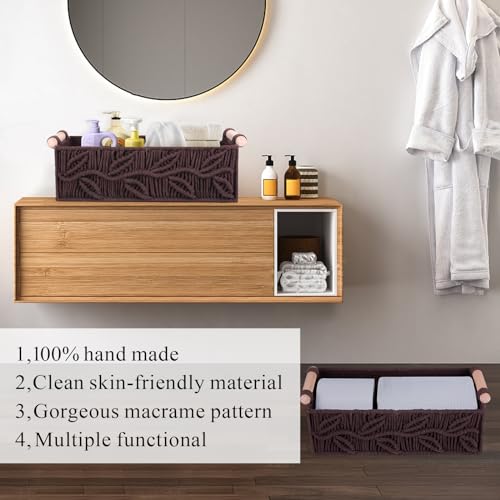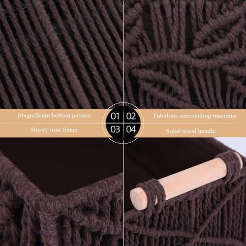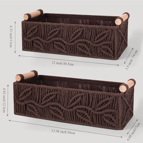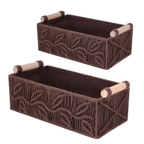 PRIMEPOCH - سلة تخزين من المكرمية بمقابض حمل ونمط بوهيمي من برايم بوتش، مجموعة من 2 قطعة، بني جوزي (وولنات).