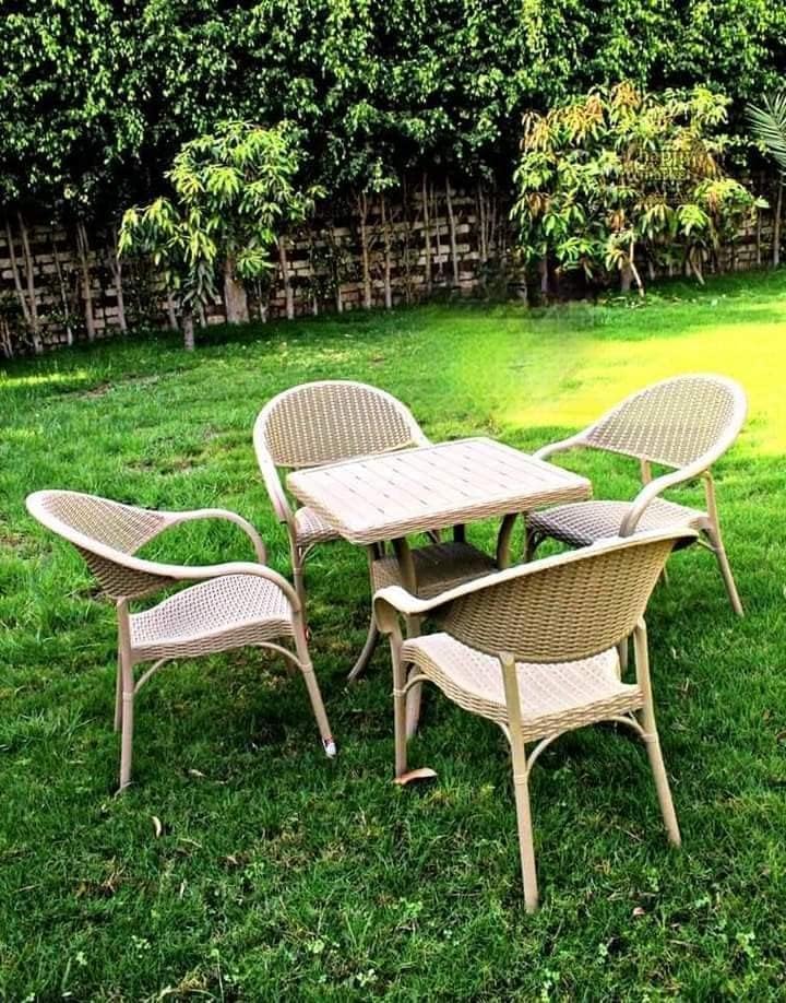Generic - طقم كراسي مكون من 4 كراسي مع ترابيزة بلون بيج من برينس بلاست