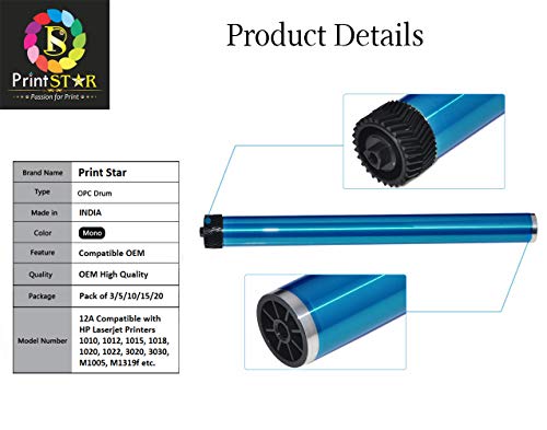 Print Star - اسطوانة تحميض الصور اتش بي 12A متوافقة مع طابعات اتش بي ليزر اتش بي 1010 و1012 و1015 و1018 و1020 و1022 و3020 و3030 وM1005 وM1319f وغيرها من برينت ستار، (عبوة من 15 قطعة)