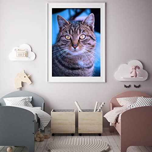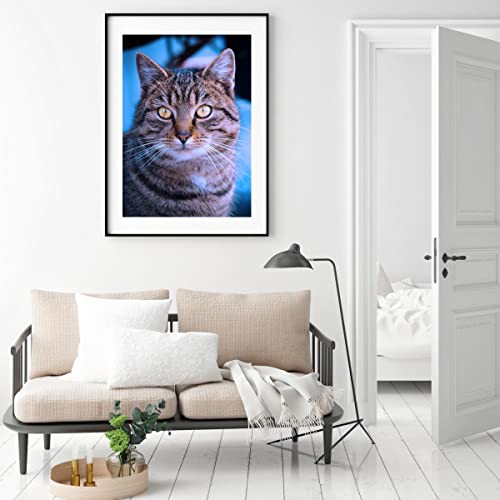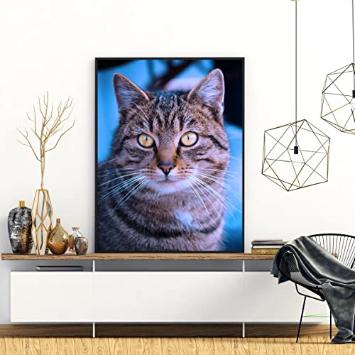 Generic - Printed Modern frame Tableau with Glass Protection -Tiger cat (20X30 cm, BLACK FRAME)