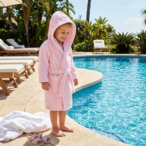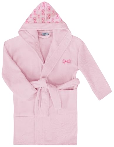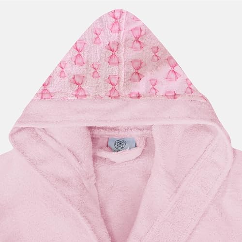 Printex.EG - Kids Hooded Bathrobe with Colorful Cartoon Prints, Soft Cotton Fabric, Highly Absorbent & Skin-Friendly, Toddler Robe with Belt for Bath, Pool, and Beach.(Rose Bow print)
