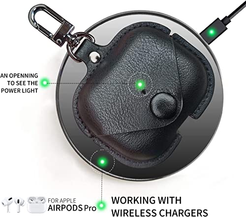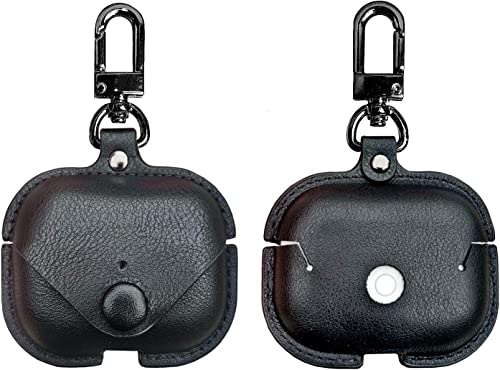 Printme - Printme Compatible for Airpods Pro 2nd Generation Case Cover, PU Leather Case Cover Protective Case with Keychain for New Airpods Pro 2 Case 2022 [Front LED Visible] (Black)
