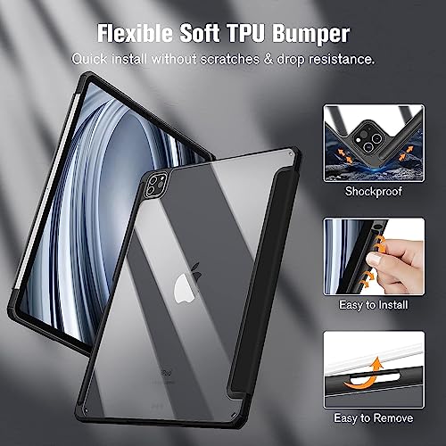 Printme - Printme Hybrid Slim Case for iPad Pro 12.9-inch 6th Generation 2022, [Built-in Pencil Holder] Shockproof Cover Clear Transparent Back Shell, Also Fit iPad Pro 12.9" 5th/4th/3rd Gen (Black)